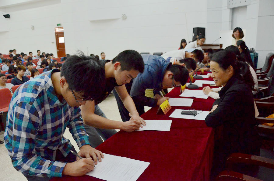 随后我院党委书记韩忠愿教授进行总结讲话。他主要讲了三个方面。一是怎样认识学风建设月这一活动,学风建设主要起到监督和提醒两个方面的作用。二是学风出现的问题。韩书记认为旷课、上课玩手机、学习缺乏动力等现象都是表面问题,根源是学生的三观(价值观、人生观、世界观)出现偏差。韩书记希望大家多读书,读好书,提高自己的综合素质,强化专业能力,协调自己与人、社会的和谐关系。三是正品行,即规范行为举止。韩书记说一些细枝末节的行为都会影响我们的整体行为规范,而一些行为可能会影响我们未来的职业生涯。最后,我院各班班长走上台,庄重严肃地签署承诺书。
