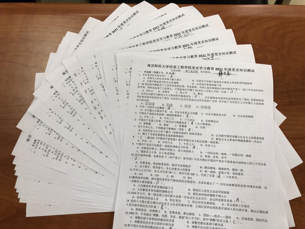 4月27日下午,信息工程学院会议室内一片寂静,有的党员奋笔疾书,有的低头沉思,一场党史学习教育知识问答考试正如火如荼地进行。为进一步深化党史学习教育成效,信息工程学院党委结合“三会一课”“党史学习教育读书日”等活动,聚焦学习内容,创新学习方式,以“考学、赛学”为抓手,进一步增强党员干部党性意识、纪律意识,坚定政治信念和前进方向,提升政治素养和履职能力。