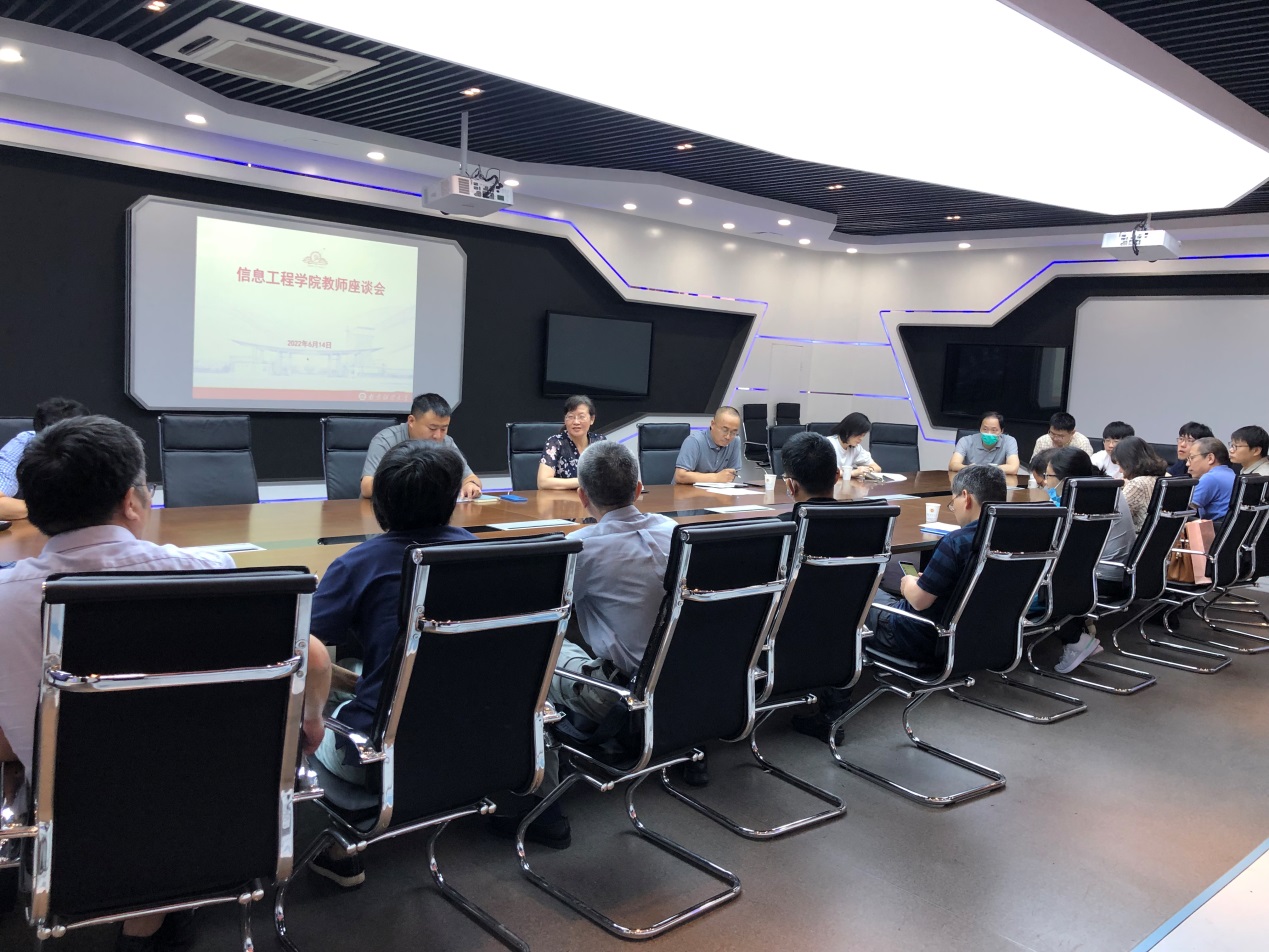 6月14日上午,信息工程学院在德业楼211会议室召开教师座谈会,广泛听取全体教授和系主任、民主党派和党外人士、老中青三代教师代表的意见建议,了解教师的困难和需求。全体院领导参加了座谈会。会议由院党委副书记、纪检委员袁军主持。