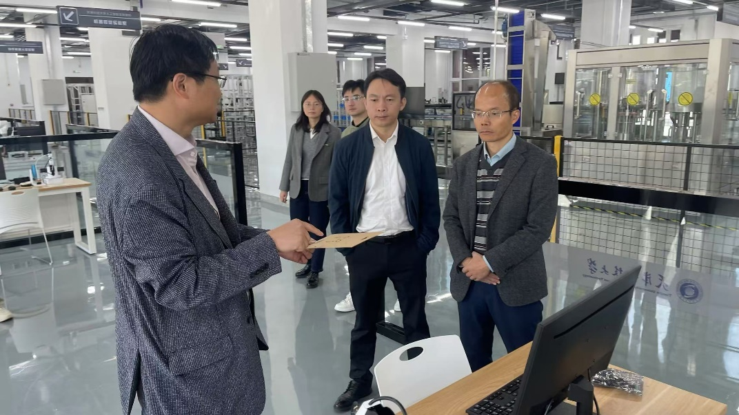 随后,黄院长一行参观了天津科技大学人工智能实践基地服务中心,与中心主任杨巨成教授进行了深入交流。杨主任从规划定位、支撑学校人才培养和学科建设情况、成果转化以及社会服务等方面对基地情况进行了详细介绍,重点参观了人工智能综合应用中心、大数据实验中心、工业机器人实验中心、智能控制中心等相关专业实验室。黄院长表达了调研学习的目的,双方围绕实验室建设、产业学院建设、成果转化及服务地方进行了探讨和交流。