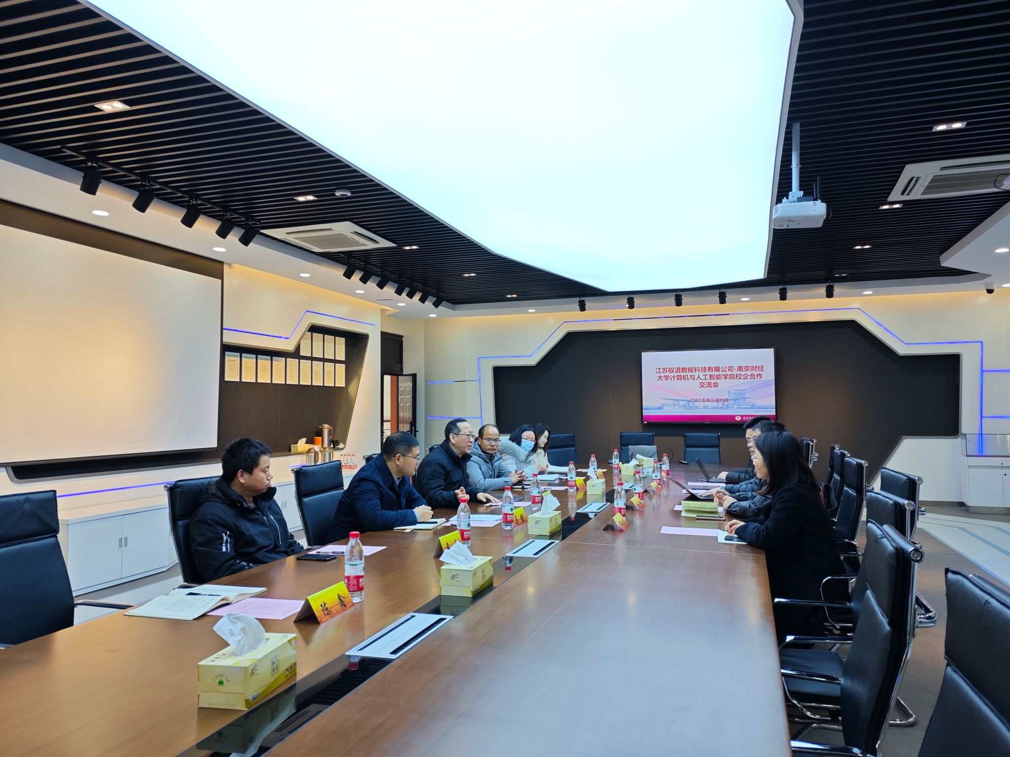 3月6日上午,江苏驭道数据科技有限公司一行在总经理蒋学辉的带领下,携手南京生态科技岛经济开发区管委会科技创新部副部长赵元岭,共同到访南京财经大学计算机与人工智能学院,双方就校企合作项目进行了深入交流与探讨。计算机与人工智能学院党委书记张阳军、院长黄健、党委副书记马健、实验室主任以及学工系统代表热情接待了来访嘉宾。