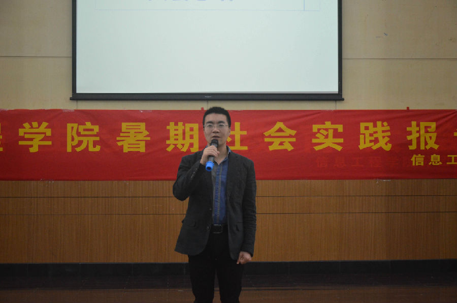 2015年10月13日晚上18:30,信息工程学院在仙林校区管理学科楼报告厅举办暑期社会实践报告大会。院党委副书记潘雪峰、分团委书记张媛媛等老师与2015级新生共同听取同学们的暑期实践总结。