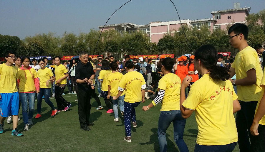 与此同时,教工组的比赛也在同一场地同时进行。我院黄波老师在教工男子乙组60米托球障碍跑中勇夺第七名。在教工跳绳积少成多的比赛中,我院马福民、蒋晔等8位教师携手勇夺第二名的好成绩。