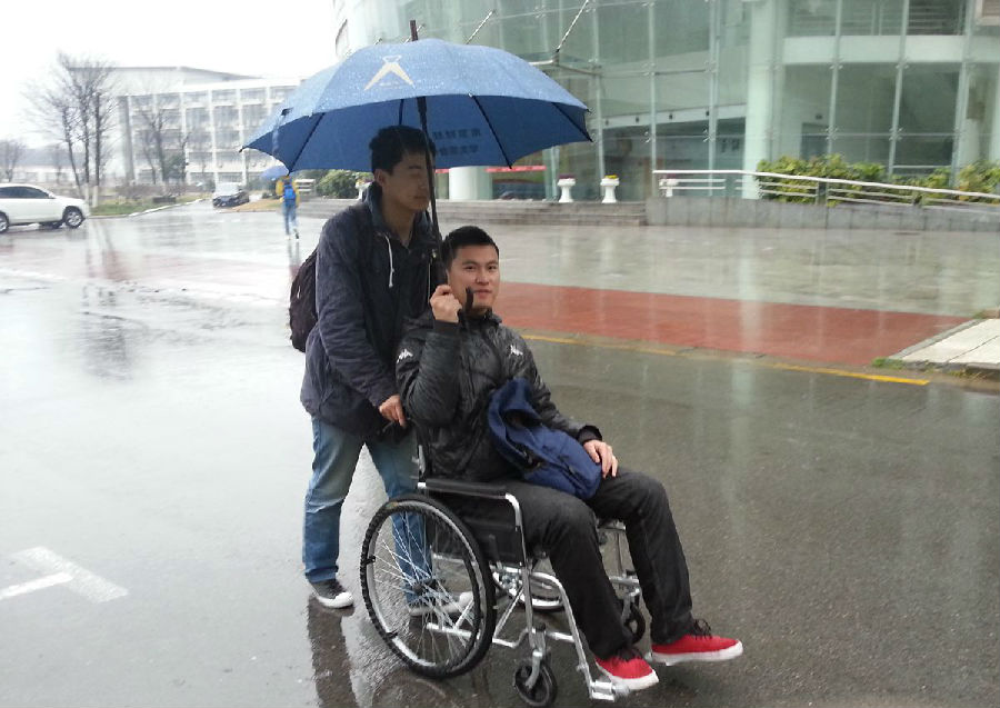 今年寒假,我院信息管理与信息系统1301班的周同学因膝盖受伤做了手术,术后有一段较长的恢复期需要坐轮椅。为不耽误学业,在家休养一段时间后该生重返校园,然而行动上的不便对他的日常活动产生了非常大的影响。了解到相关情况后,该生同班同学立即召开了班委会,并自发组成了志愿小组,由大家排班轮流来负责照顾周同学的学习起居生活。近一个月以来,每天早晨上课之前小伙伴们就来到周同学位于中苑11号站的寝室,背他走下楼梯,并用轮椅推送他去专业楼上课,风雨无阻。针对周同学在家休养时缺席的课程,我院成绩较为优秀的学生主动提出帮助周同学补习功课。在细致的讲解以及互相探讨交流中,周同学很快就跟上大家的学习进度,对课程不再担忧。