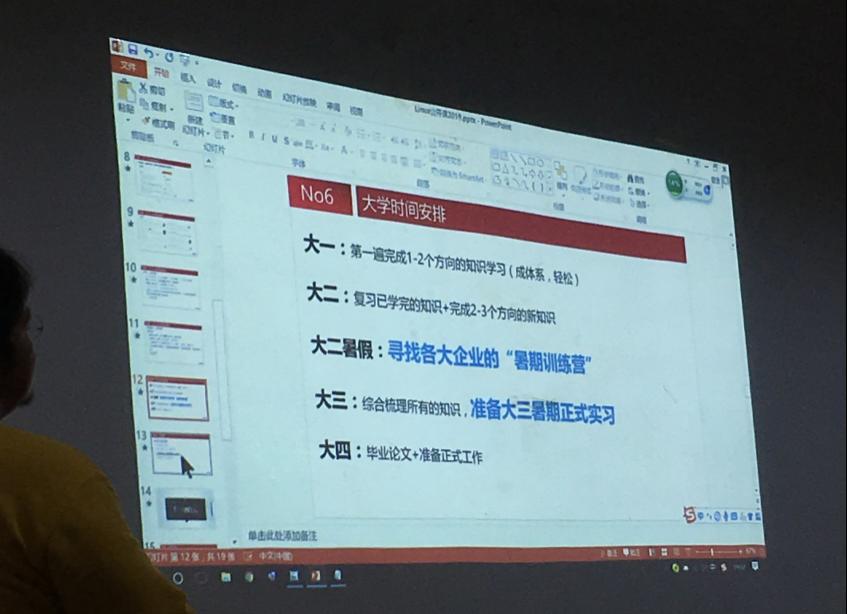 我们请来了社会上有丰富的IT工作经验的讲师给学生们分析了大学四年中每一年需要学习和具备的能力以及如何使自己找工作时更有竞争力。