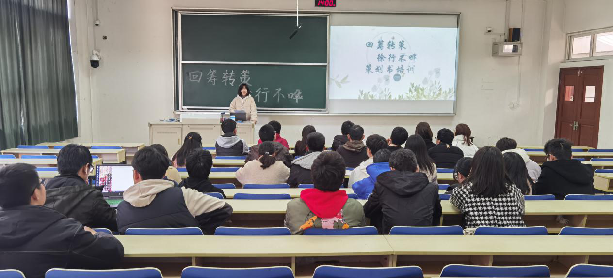 11月29日下午,我院学生会综合事务中心于德业楼111教室开展了“回筹转策,徐行不哗”策划案培训活动。学生会综合事务中心负责人孙敏茜作为主讲人,希望通过策划案培训讲座,让更多的成员学会更加规范的完成活动策划案,从而提高学院学生活动质量。