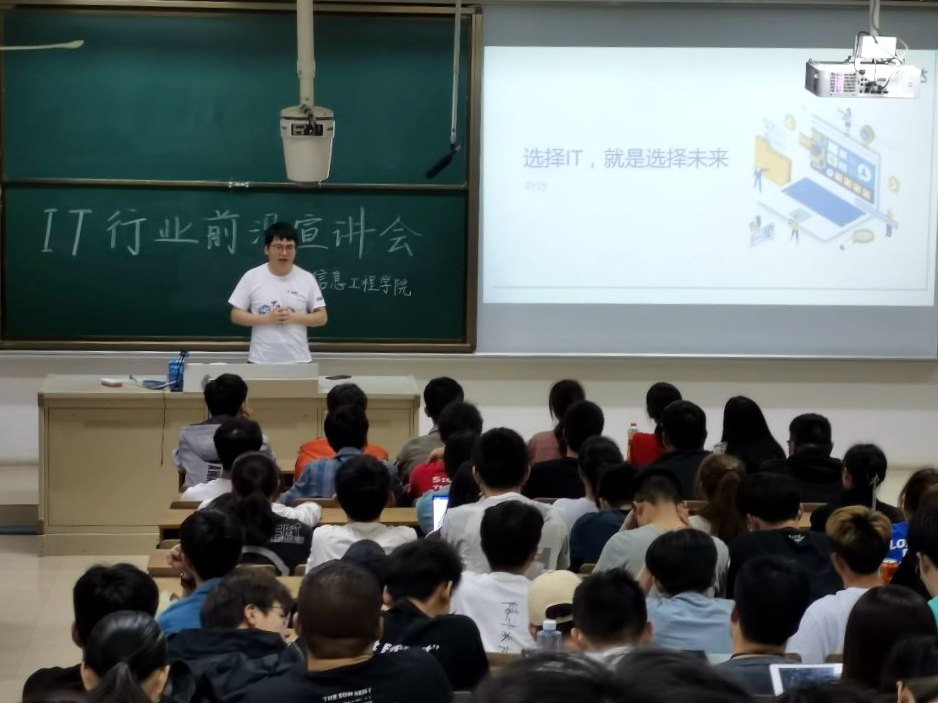 为了让同学们更好地了解行业发展,做好个人学业、职业规划,5月13日晚,应信息工程学院邀请,杭州优课达网络有限公司合伙人叶冰在我校仙林校区博观楼203教室作了《选择编程,就是选择未来》的专题讲座,辅导员孙脉、刘芳以及信息工程学院全体2020级学生参加,本次宣讲座由孙脉老师主持。