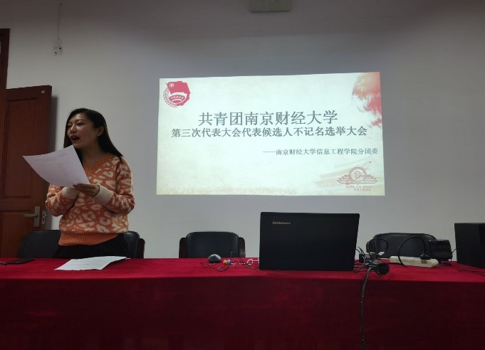 2020年11月26日,信息工程学院分团委按照相关要求,召开关于共青团南京财经大学第三次代表大会代表选举会议。会议由2018级辅导员倪青青老师主持,出席的人员有20级各班团委班子成员以及18级、19级各班团支书。