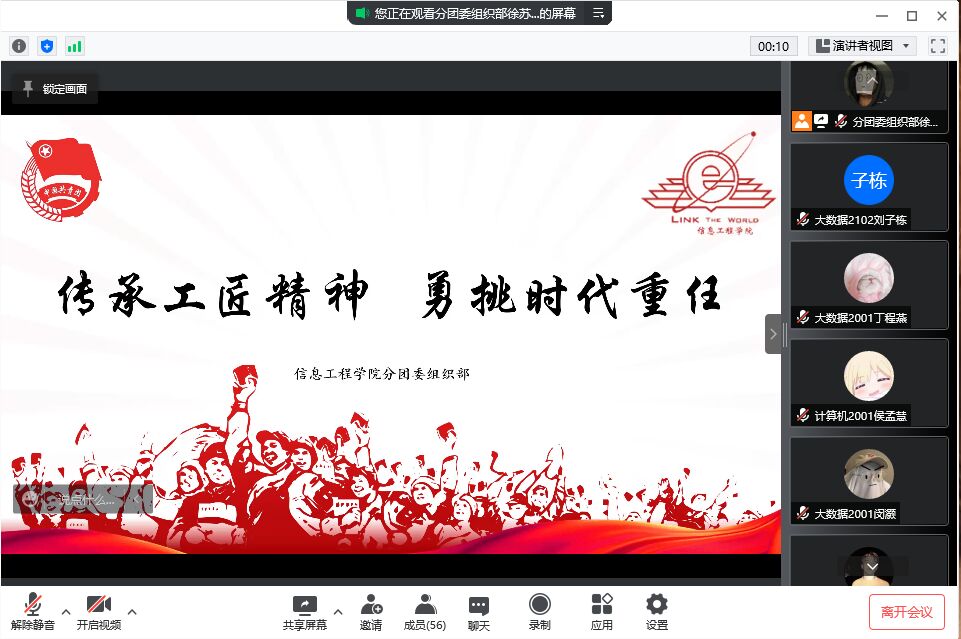 为大力弘扬工匠精神,激发新时代青年们披荆斩棘、砥砺前行的强大精神动力,4月30日,信息工程学院开展了“传承工匠精神,勇挑时代重任”专题学习。