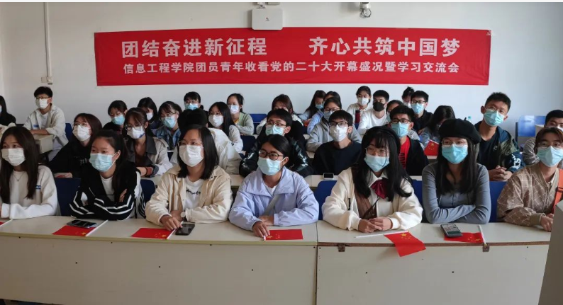 10月16日上午,中国共产党第二十次全国代表大会在北京隆重召开。为深入学习贯彻党的二十大精神,从党的重大成就和历史经验中汲取奋进力量,信息工程学院分团委和各支部组织团员青年集中学习,利用网络、新媒体客户端等平台收看大会。