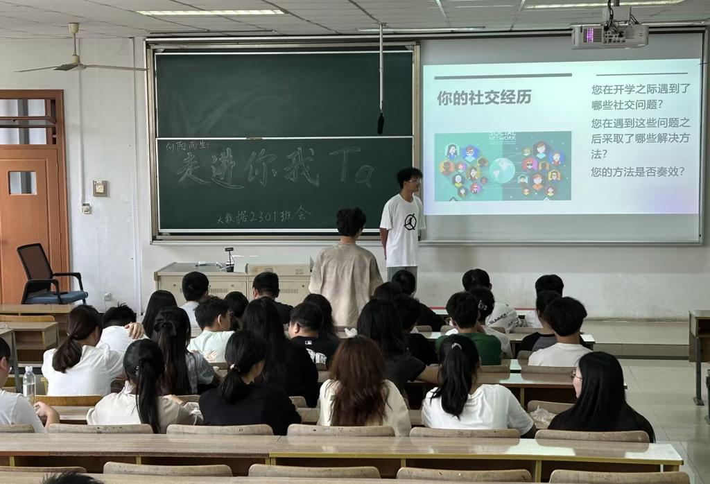 9月27日,大数据管理与应用2301团支部举办以“打破交际壁垒,走出社交迷茫”为主题的心理班会。主持人以提问的方式拉开序幕,“开学之际,在社交上遇到了哪些问题?”“遇到问题后选择了怎样的解决办法?”, 辅以传声筒、你画我猜等小游戏进一步升华主题。