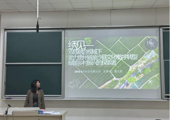 随后,“绣见——双线融合视域下助力贵州省金沙县文化IP数字转型赋能乡村振兴”团队队长龙文雪,简述项目的整体概况后,讲述前期准备、实地走访方面的经历和实践总结。