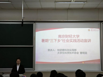 为贯彻落实习近平总书记关于青年工作的重要论述,进一步引导信工学子有序开展暑期社会实践活动,4月19日晚,南京财经大学信息工程学院在博观楼302举办了“丹心筑梦三下乡,踔厉奋进新征程”暑期社会实践宣讲会暨素养公开课。
