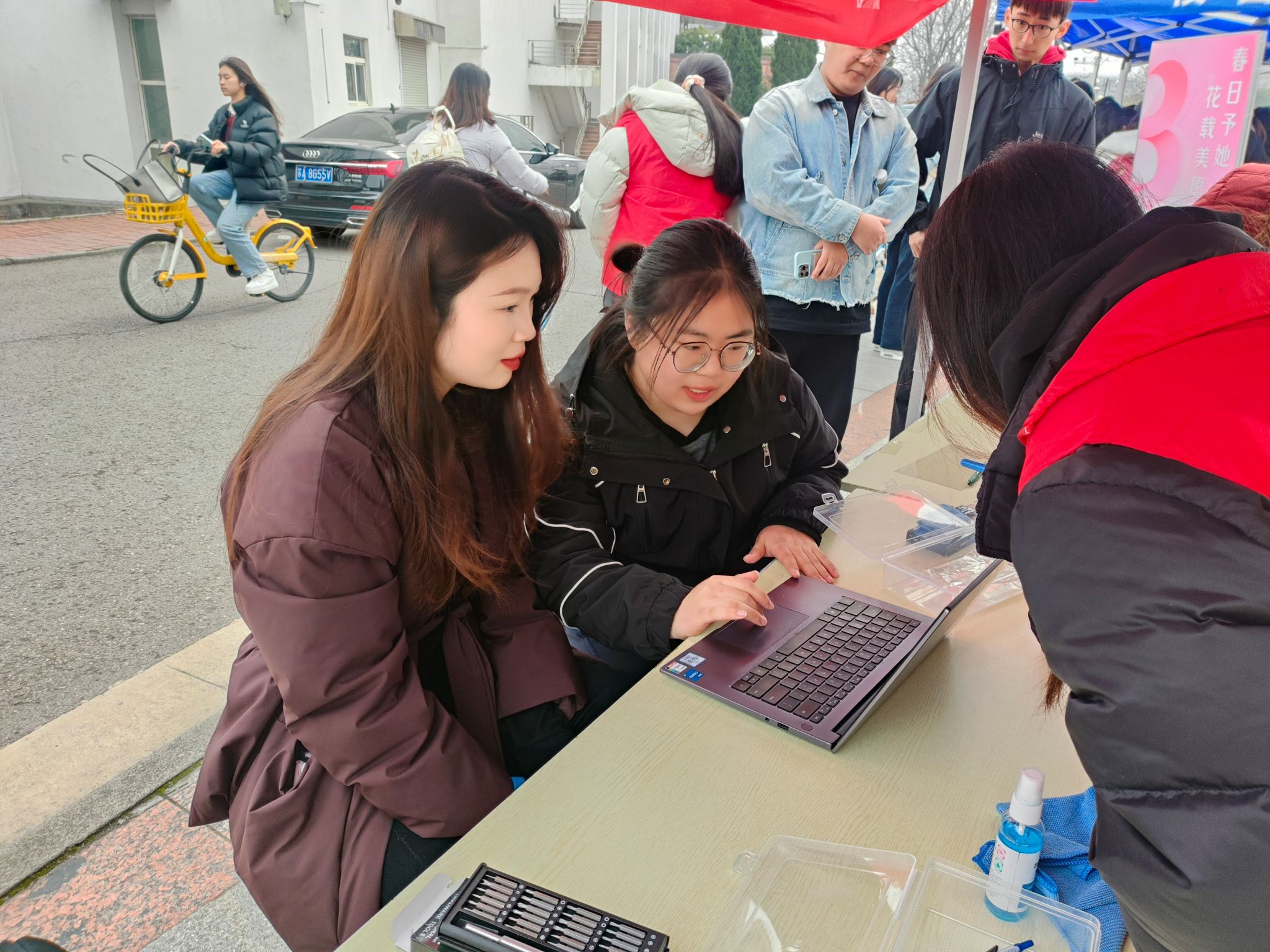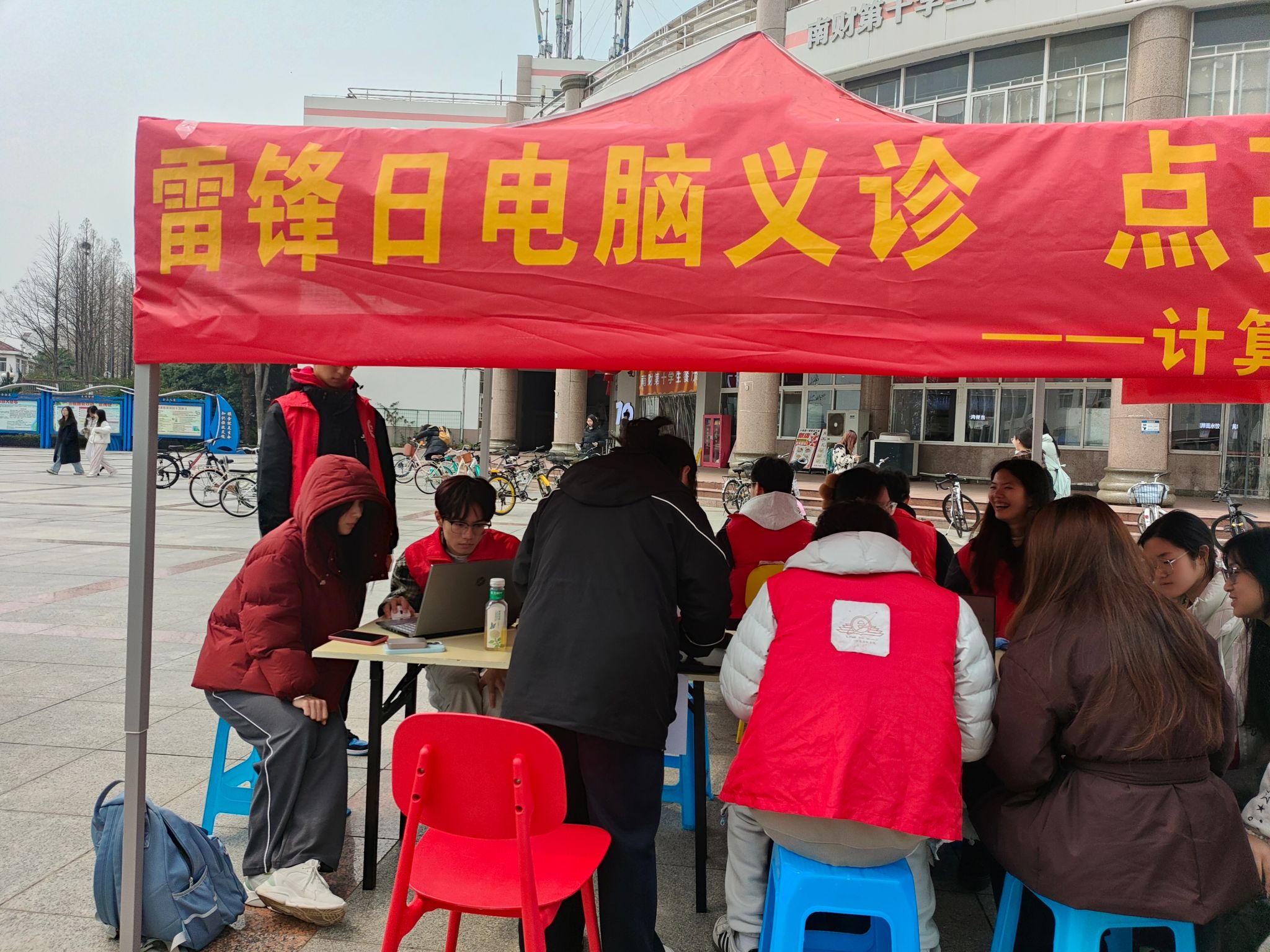 为弘扬新时代雷锋精神,践行科技服务师生的理念,计算机与人工智能学院于3月7日在中苑食堂前举办了“雷锋日电脑义诊”公益活动。此次活动旨在为全校师生提供免费的电脑维修和技术支持,通过专业力量传递温暖,助力校园数字化生活的提升。