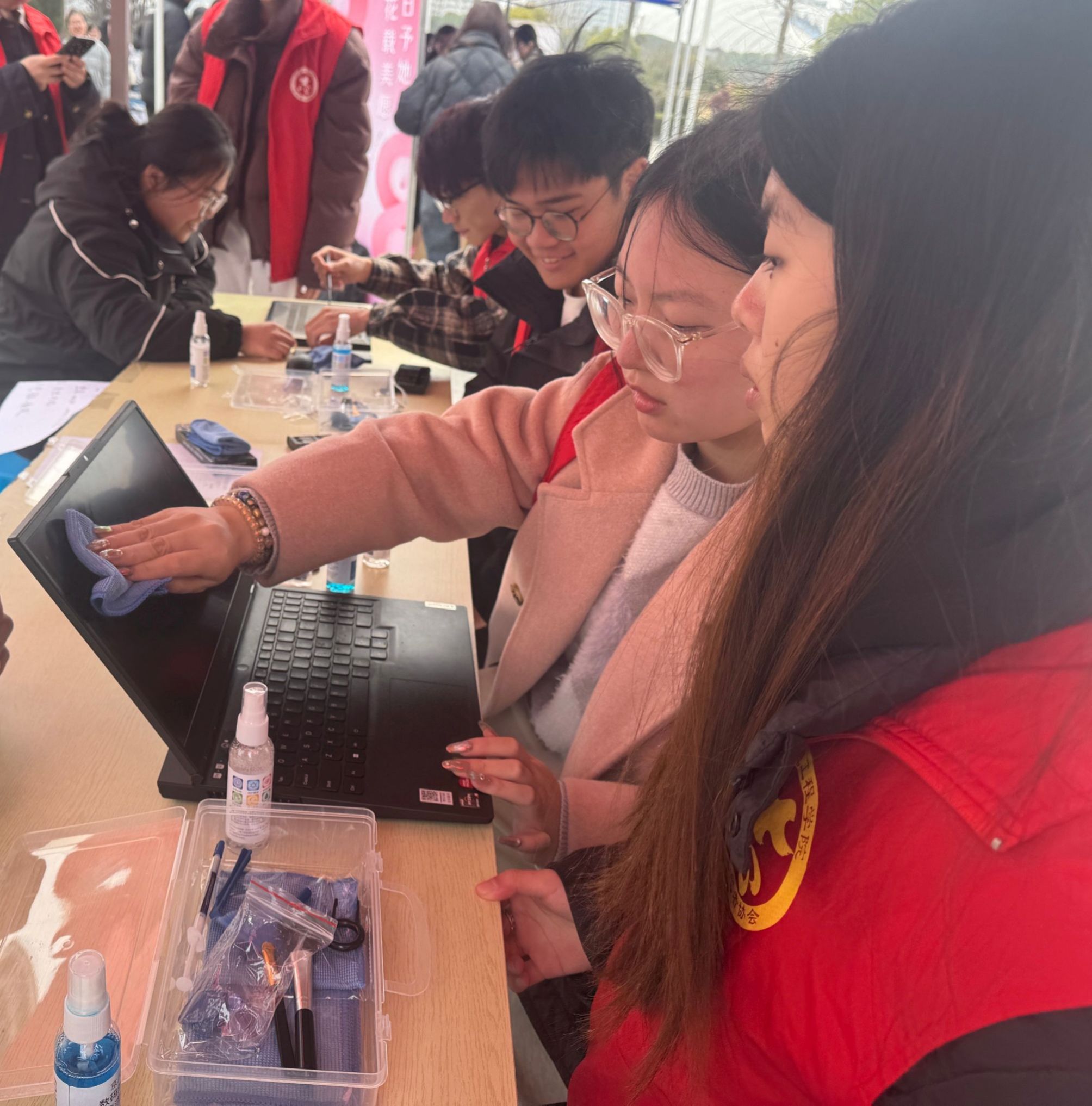 活动现场,志愿者们分工明确,有的耐心解答咨询,有的专注处理技术难题。金融学院的李同学表示:“我的电脑频繁蓝屏,志愿者不仅帮我重装了系统,还优化了运行速度,效率特别高!”活动监督员王同学全程跟进服务流程,记录反馈意见。她提到:“许多同学对电脑维护知识了解有限,我们的服务不仅解决了问题,也普及了日常维护技巧,很有意义。”