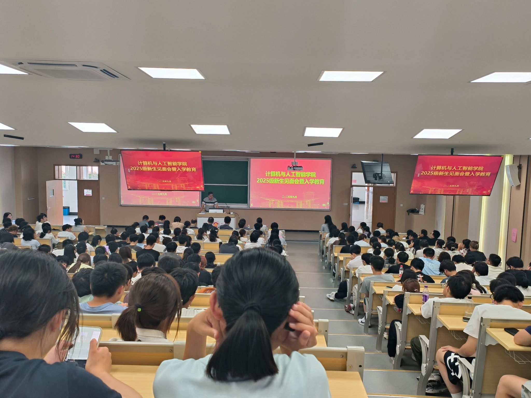 会议伊始,黄健院长致欢迎辞。他代表学院热烈欢迎2025级新同学加入计算机与人工智能学院大家庭,随后向大家全面介绍了学院的发展历程、学科建设、师资建设等方面情况,勉励新生们大学四年期间早立鸿鹄之志,勤勉自律,提升个人修养与品德,做一名诚实、守信有爱心的大学生。