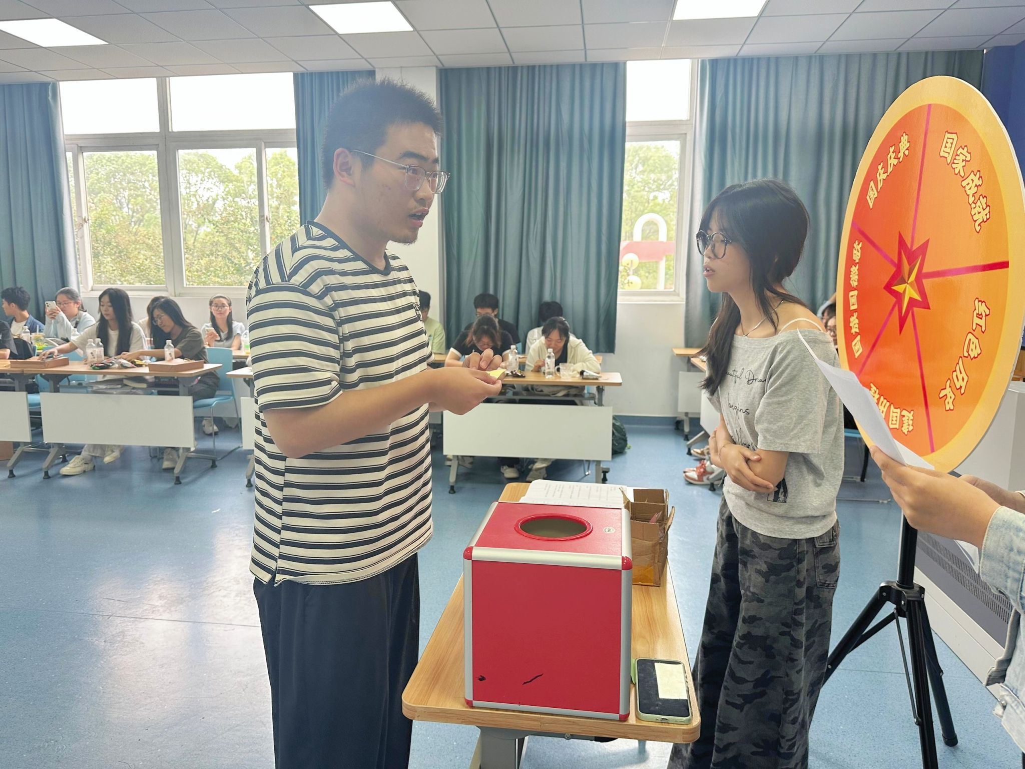 首轮进行的是国庆知识问答环节,题目涵盖祖国历史、发展成就与科技前沿等内容。参赛选手沉着应答、思路清晰,展现出扎实的知识积累与良好的综合素养。这不仅是一场知识竞赛,更是一堂生动的爱国主义教育课,进一步坚定了同学们将个人所学融入国家发展的信念与决心。