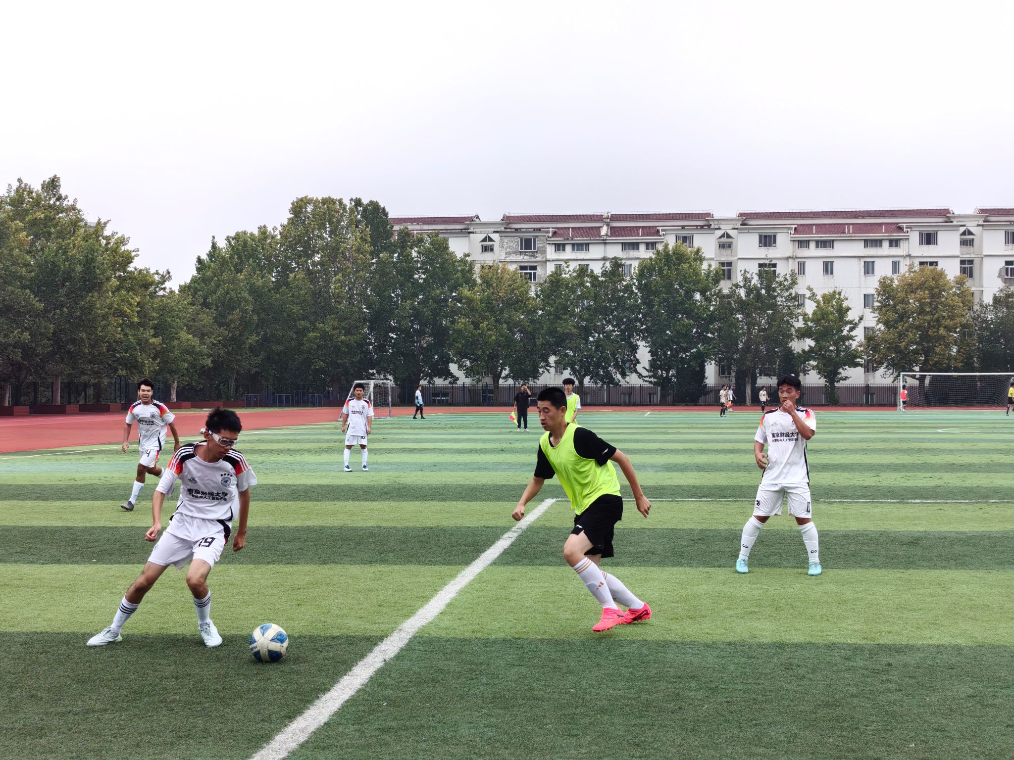 10月12日上午十点,计算机与人工智能学院与会计财税学院的比赛率先打响。一开场,身着白色队服的我方队员便迅速进入状态,展现出强大的中场控制力与流畅的传接配合。他们凭借精准的传导与灵活的穿插跑动,持续向对方防线发起进攻。