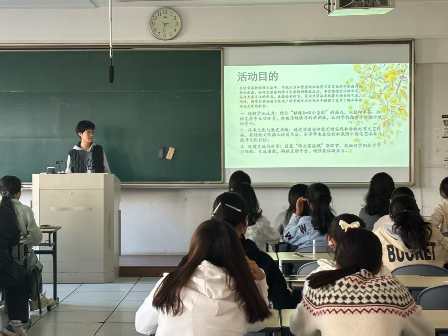 金秋送爽,诗意盎然。为丰富同学们的课余生活,纾解学业压力,并传承中华优秀传统文化,计算机与人工智能学院学业发展中心于近日精心策划并成功举办了以“才思竞答织锦,拓缟瓶函撷秋”为主题的金秋文化体验活动。活动巧妙融合了非遗技艺体验、知识竞答挑战与学业互助交流,吸引了众多学子的积极参与。