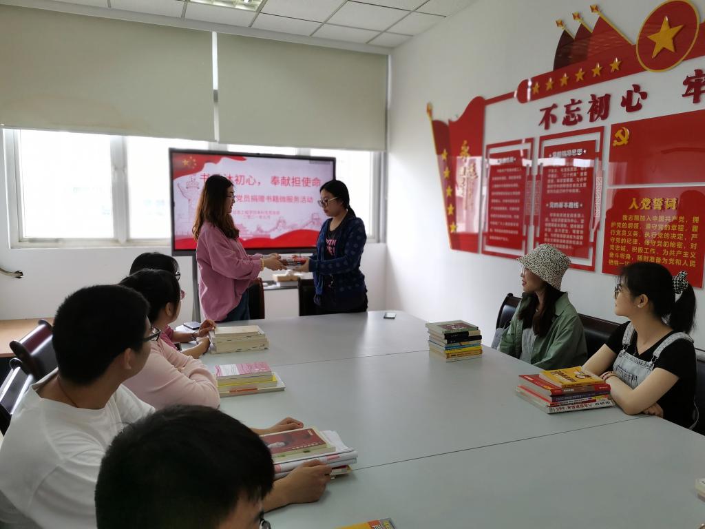 为了营造良好的学习氛围,弘扬爱心奉献的高尚精神,5月17日上午,信息工程学院本科生第一党支部在仙林校区德业楼412开展“书香沐初心,奉献担使命”为主题的毕业生党员书籍捐赠活动。本科生第一党支部书记张婷和部分大四学生党员参加本次活动。